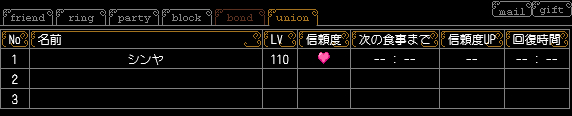 シンヤ(ワーウルフ)との仲が桃色になりました。と言っても結構前ですが。